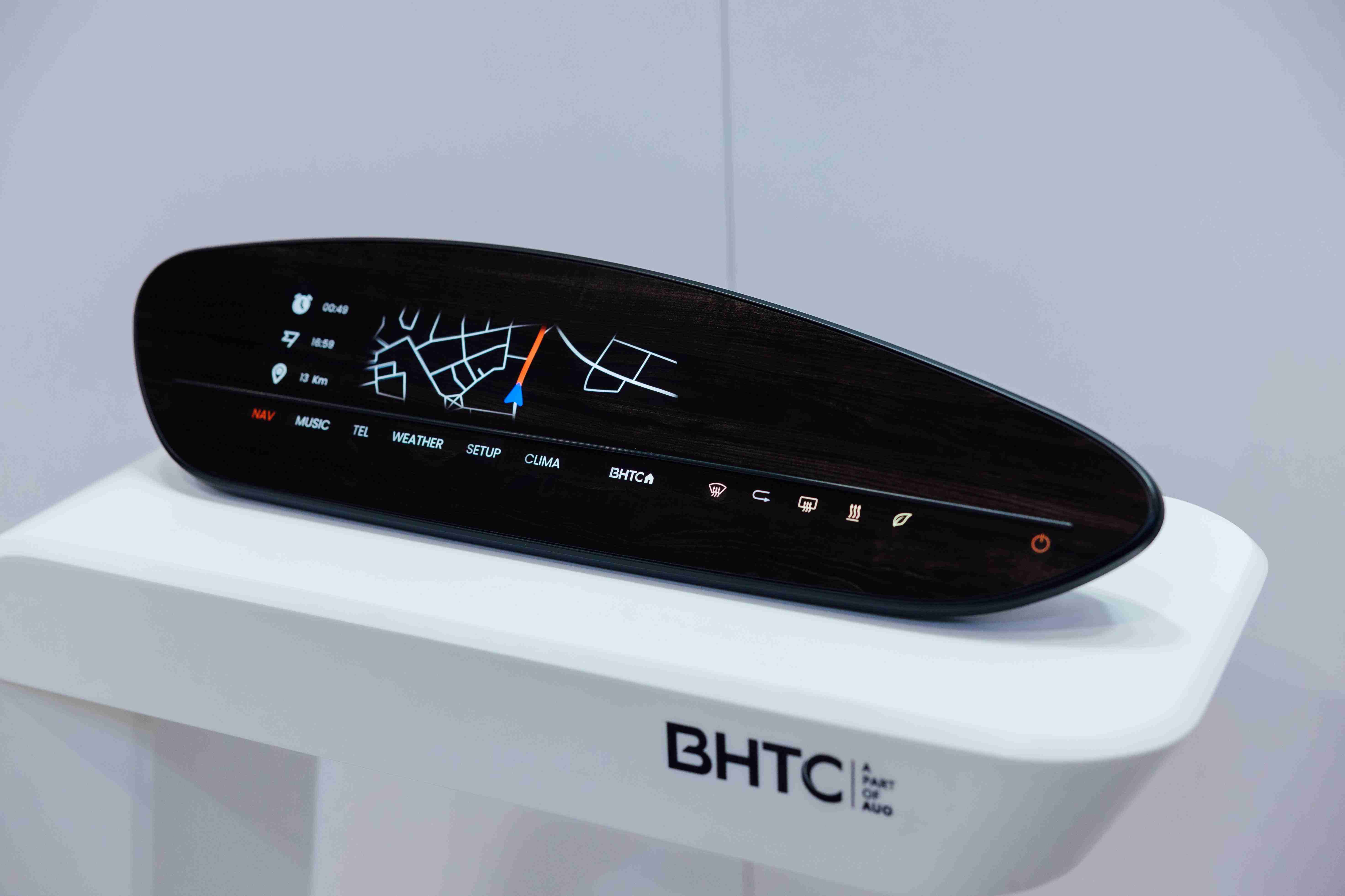 BHTC的木纹车用显示器(Display Behind Wood)将无缝木质表面与显示器结合后,,,,可以融入车内设计中,,,提供驾驶优质的视觉效果,,,,加上其无边框的设计和亮度调控,,,创造更优质的车内体验。。。