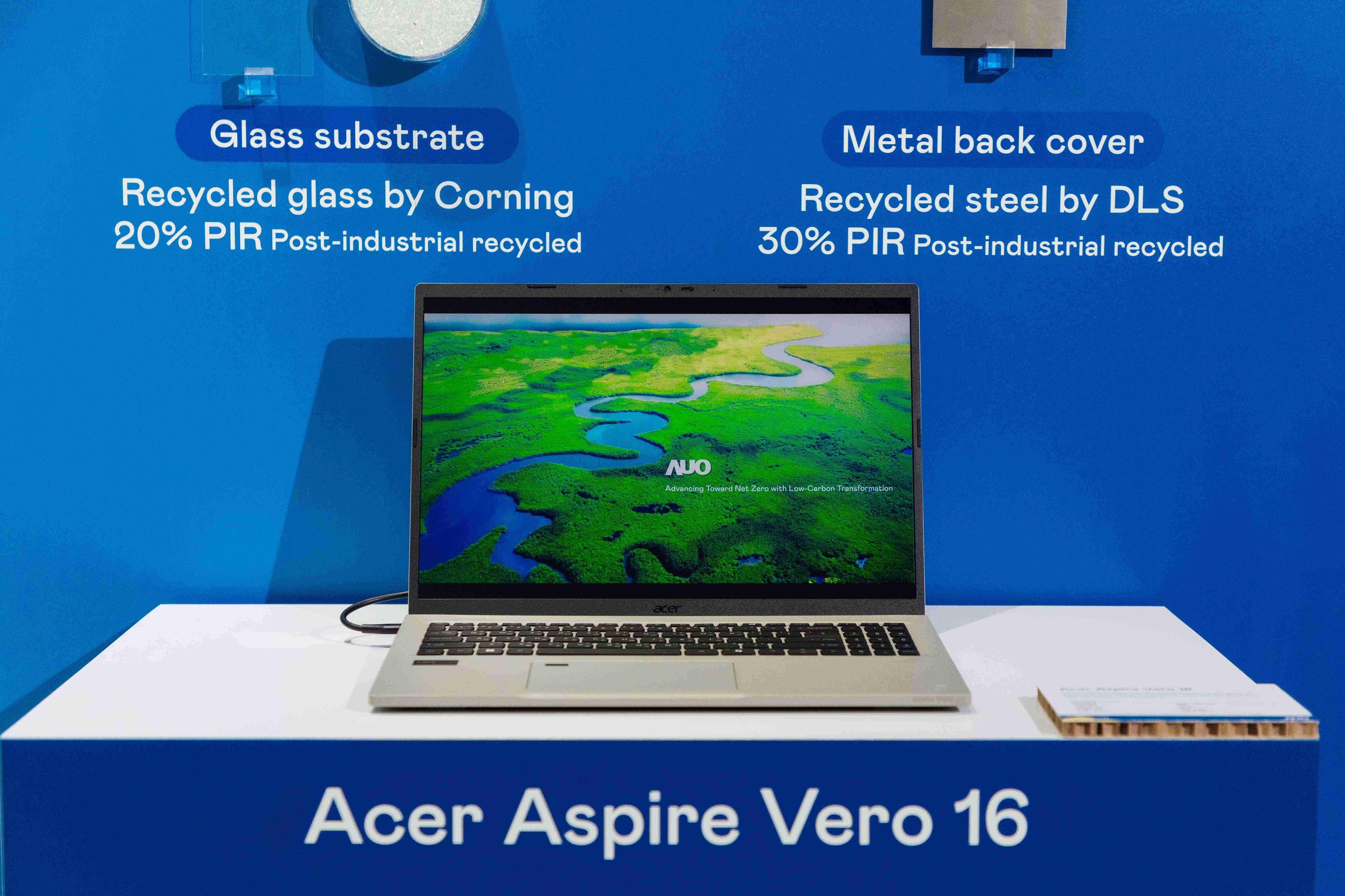 全球首款笔记型电脑采用彩霸王100%绿电制造的面板,,,,结合PCR外亦使用工业后回收材料(PIR),,,,例如回收玻璃和金属,,减少对环境的影响。。。。