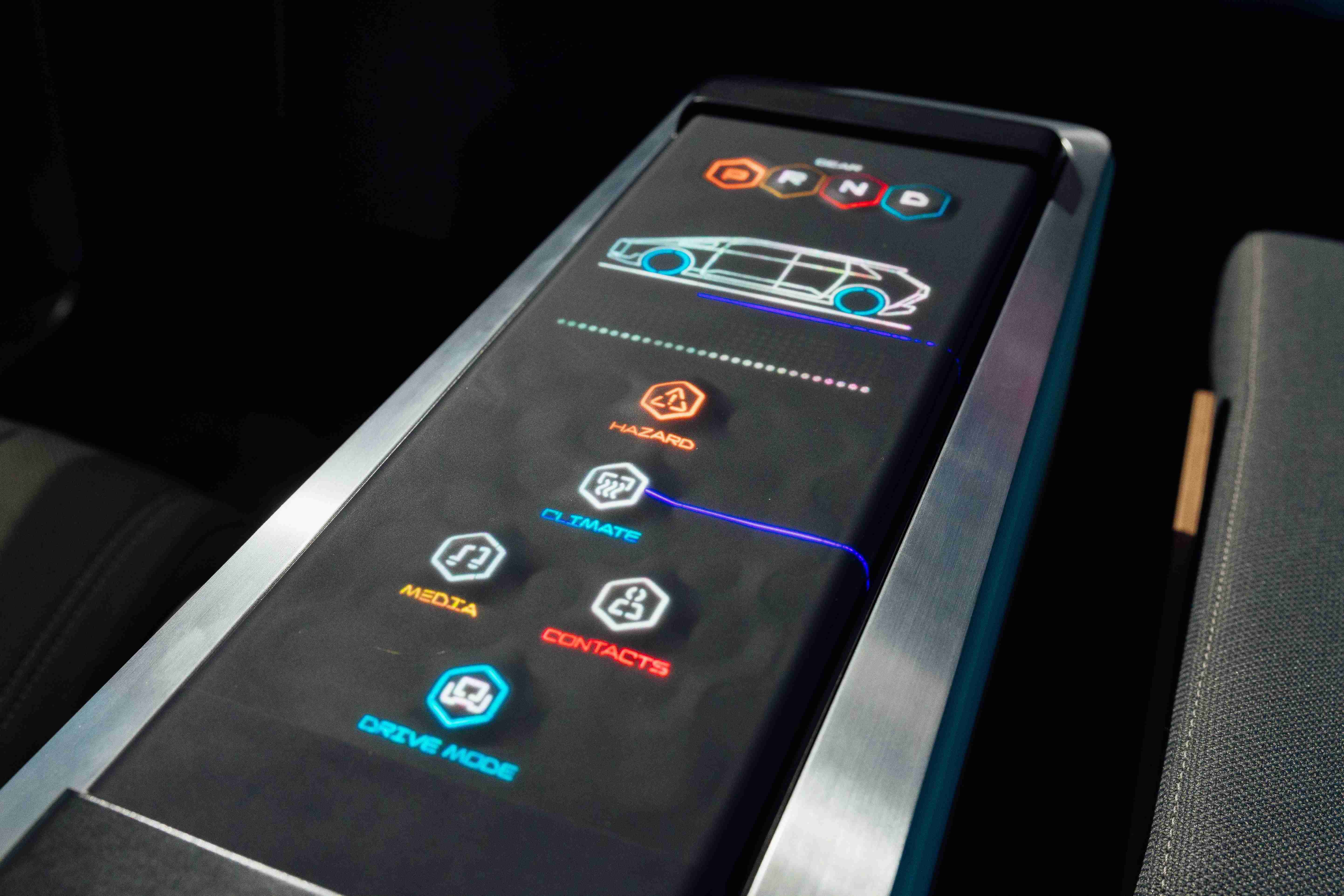 多变形态中控显示(Morphing Center Control)拥有动态变化的表面,,平时常态显示车辆功能,,,,进一步操作时,,,则会隆起成为3D 按钮,,并在触控时以震动回馈,,,,以精细的操作开创人机互动新境界。。