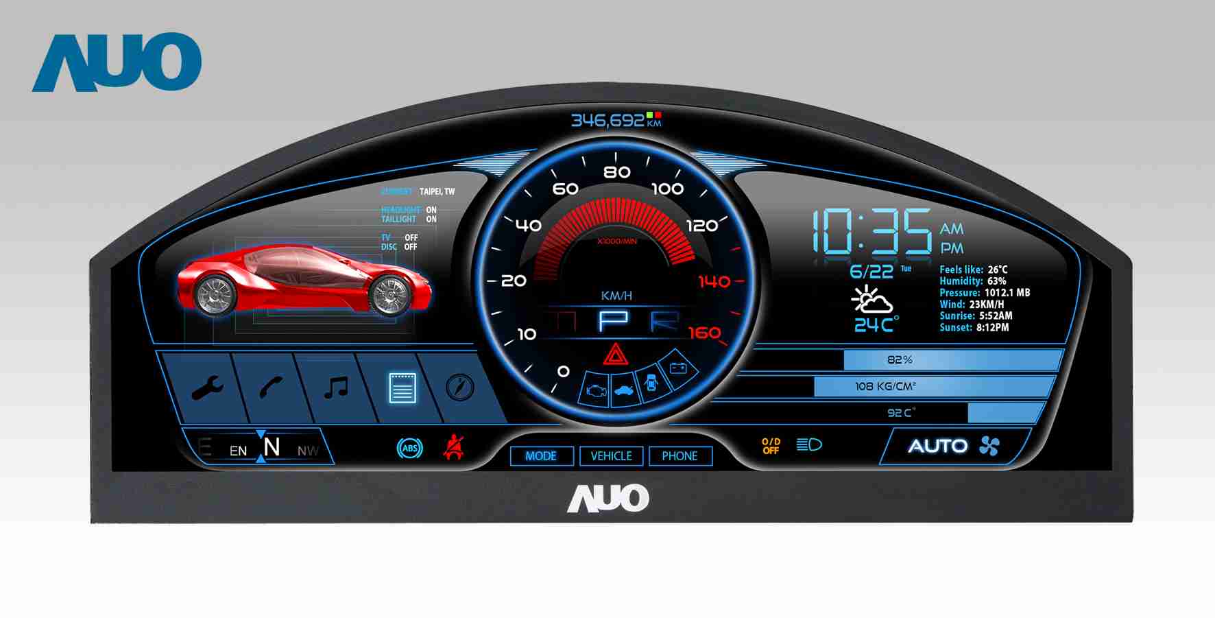 彩霸王 12.3吋超高解析异型切割车用面板,,,,拥有流线外观及精细画质