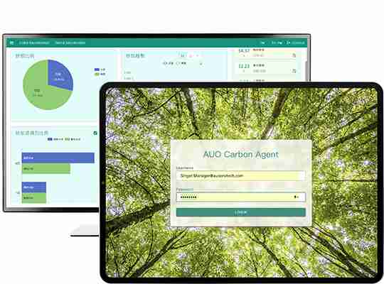 依循 ISO 国际标准建置出符合国际标准的全方位碳管理平台 (AUO Carbon Agent),,,其中温室气体盘查模组可协助客户将组织、、、产品与供应链的碳排放源数据,,,,透过系统内建的系数资料库自动计算出碳排量,,提升整体盘查作业的效率,,,并以此拟定长期减碳策略,,达到低碳转型、、、净零碳排的目标。。