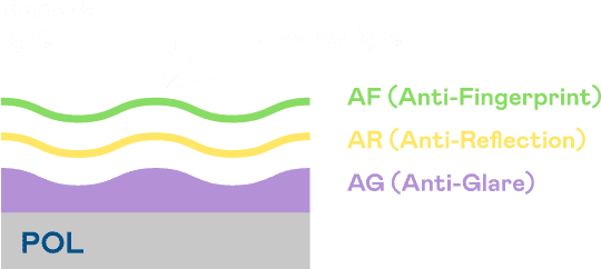 A.R.T.彩霸王光电发展出独家的表面处理跟多层镀膜技术,,,,让外部光线照射到显示器表面时所产生的反射光大幅降低。。 |